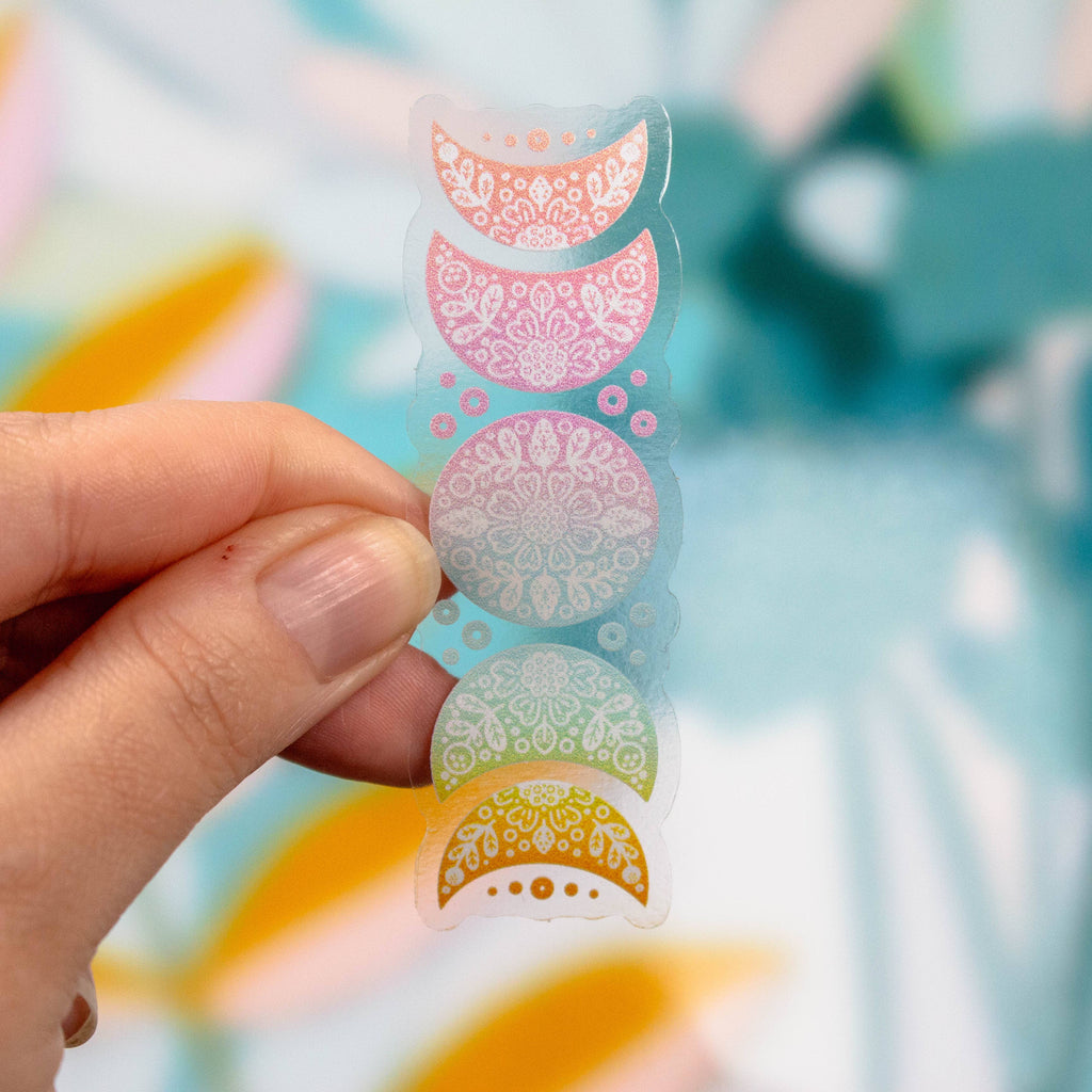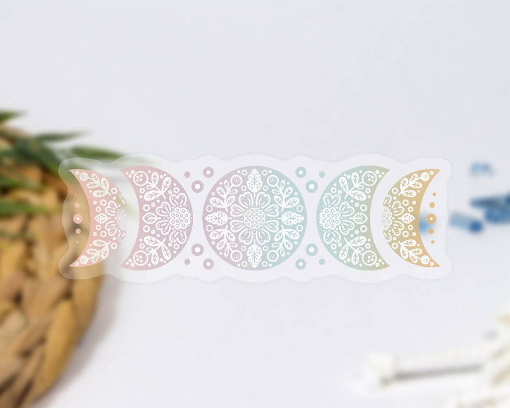 Clear Pastel Moon Phases Folk Art Sticker 3" x 1"