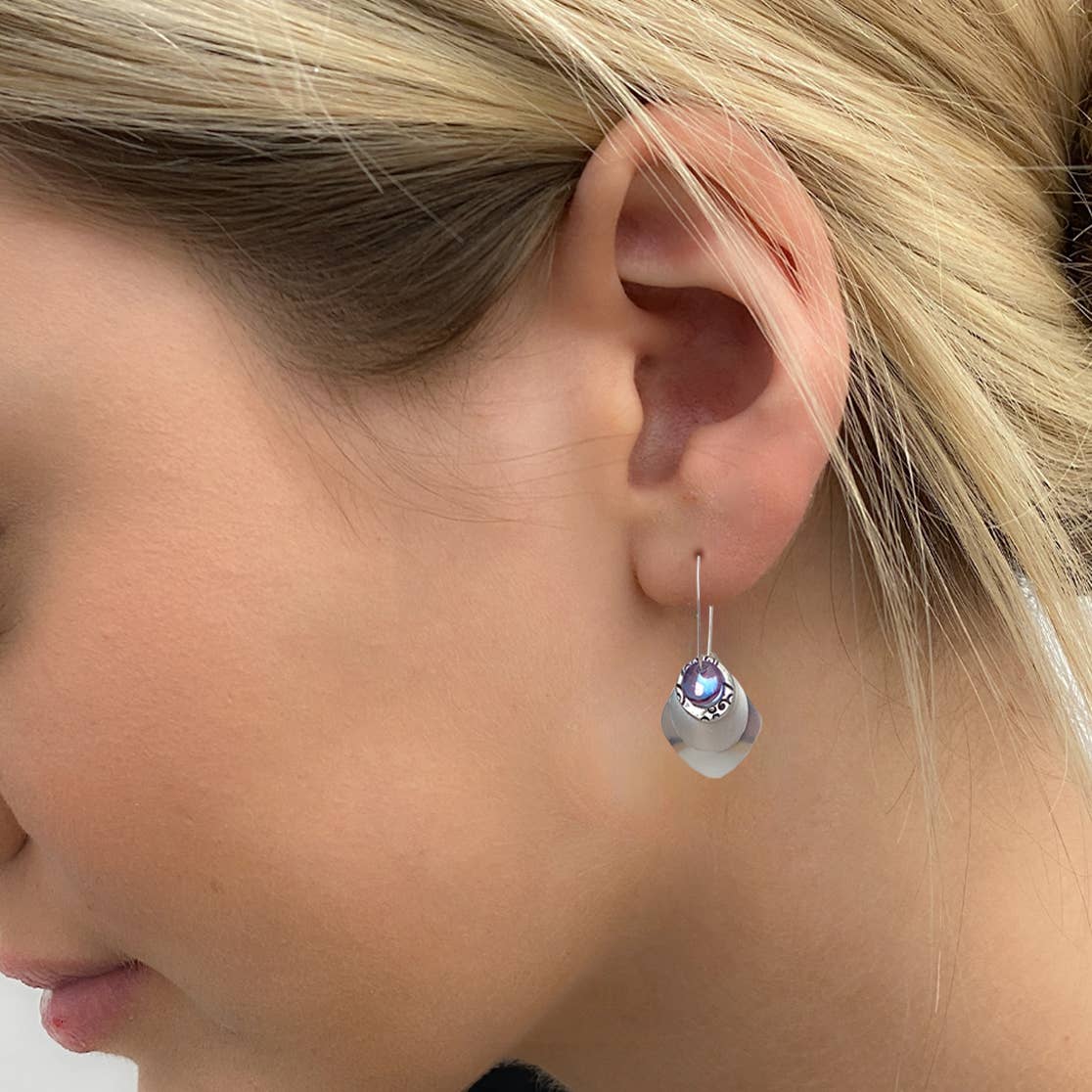 The earrings measure 1 3/4" in length. Wires are designed using North American refined nickel-free Sterling Silver.