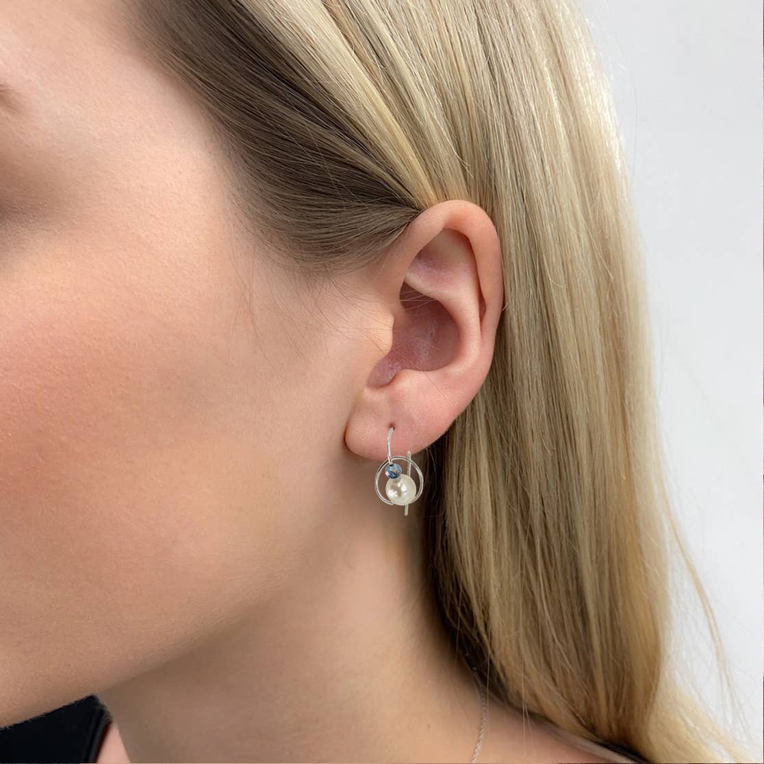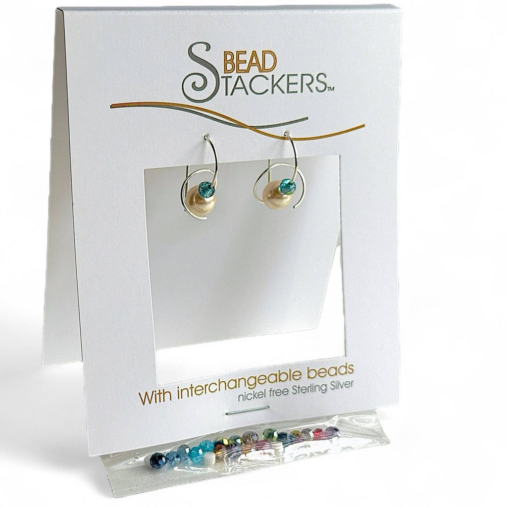 Earrings come with 9 interchangeable sparkling glass crystals. A very petite design that is great for women of all ages. Pin like closure keeps earring secure on ears. The wires are designed using nickel free Sterling Silver.