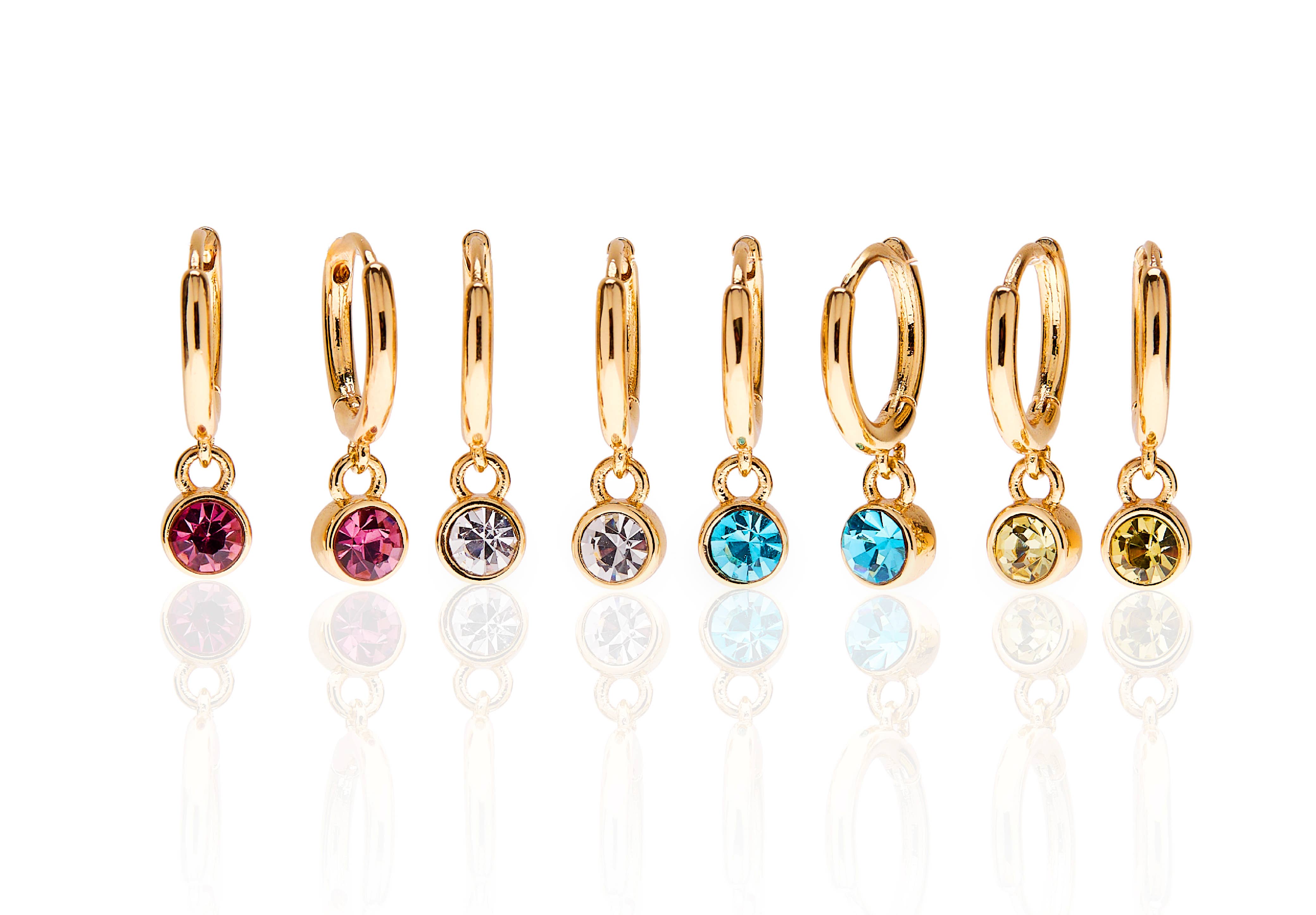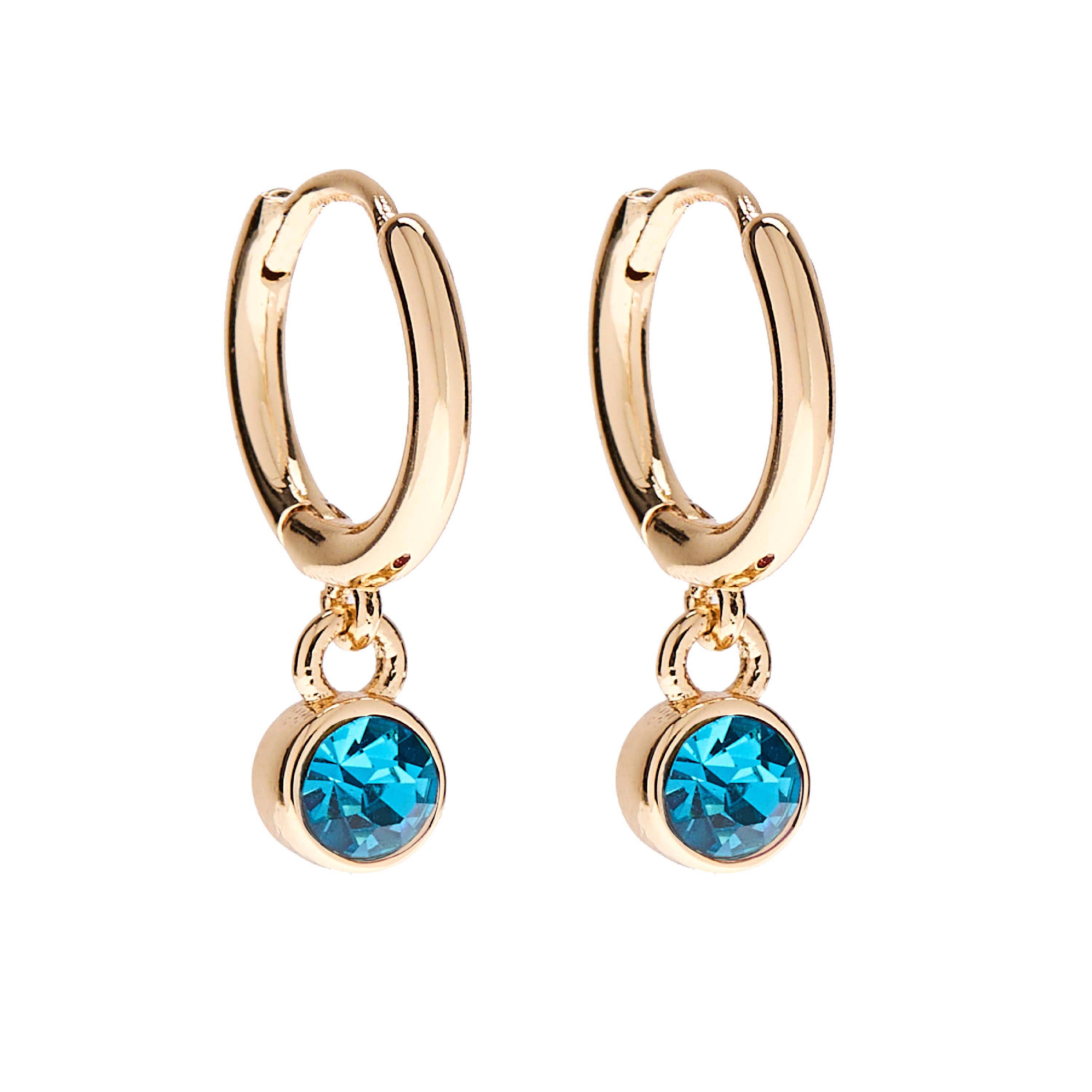 The Birthstone collection lets you individualize your everyday style with a set of earrings you can mix and match for any occasion. The December Birthstone Earrings showcase delicate huggie hoops with a dangling turquoise-toned stone that represents friendship, matching cushion stone studs, and a gold plated triple dot bar.