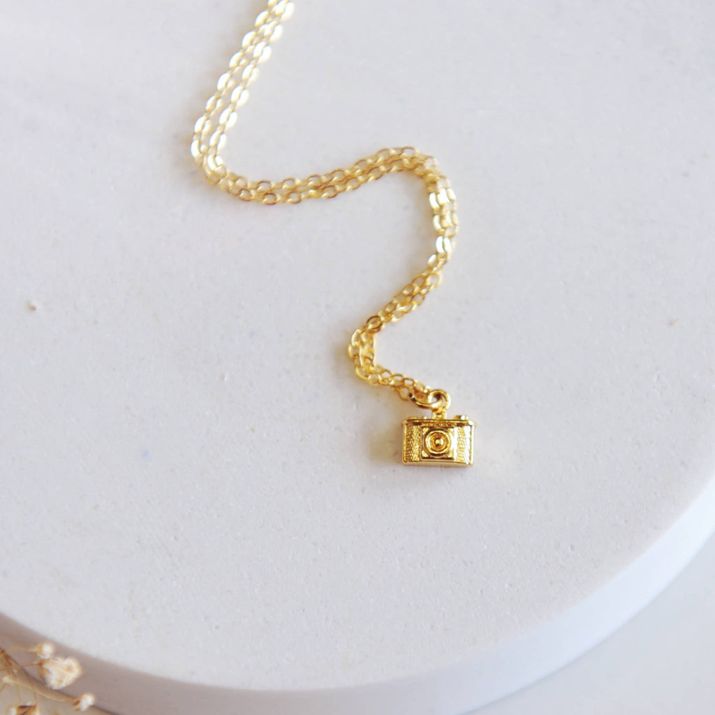 18” necklace with 16k gold plated brass. Charm: 9mm *Matching earrings available
