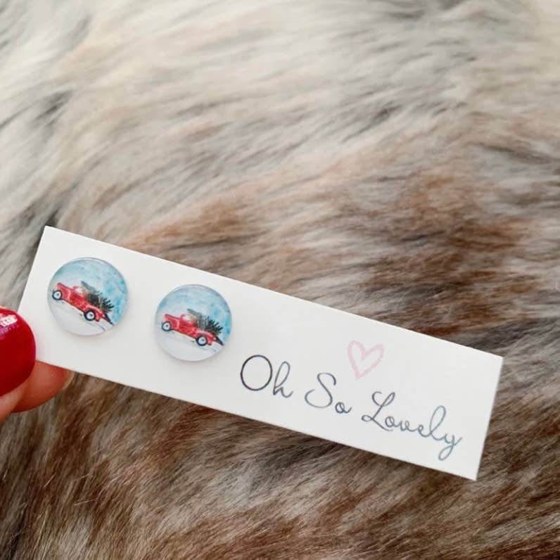 Welcome the holiday season with our Christmas Truck earrings from Oh So Lovely. Each piece measures 10mm and is crafted from hypoallergenic stainless steel, making it suitable for all skin types. Whether you're attending a festive gathering or just spreading holiday cheer in your everyday life, these earrings are a charming addition to any outfit. Made with love by Jenny, our designs aim to bring joy to every occasion. Remember, our prime purpose is to help and bring joy to others.