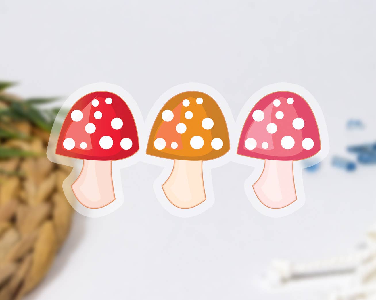 Mushroom Trio Clear Waterproof Vinyl Sticker