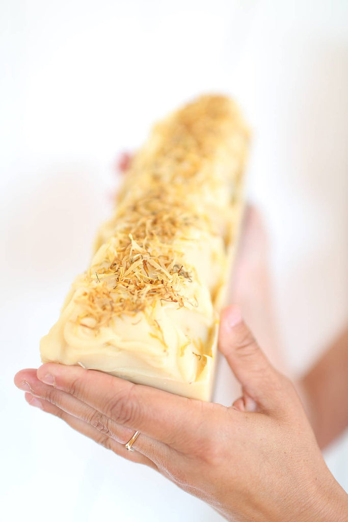 Sunflower Fields Soap Bar by SOAK Bath Co captures the beautiful golden tones of our favourite Fall flower! Lemongrass fans, this one’s for you!